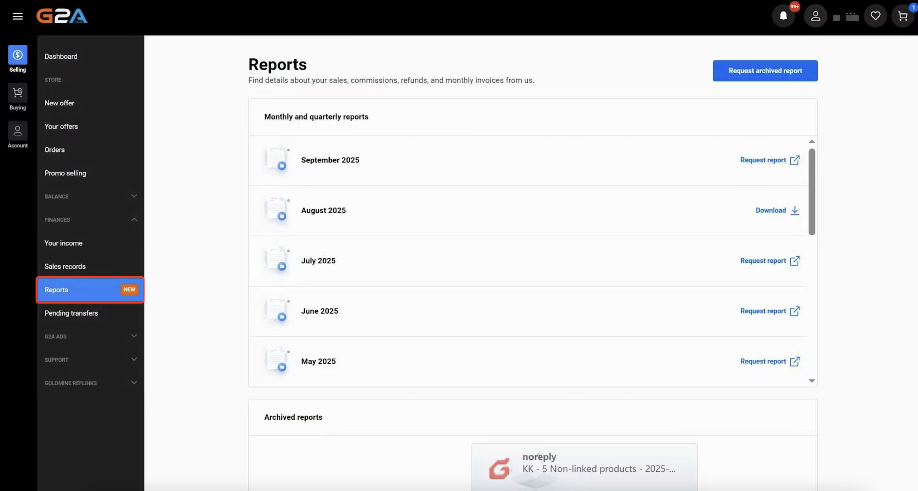 点击【Reports】菜单可按月下载订单:
