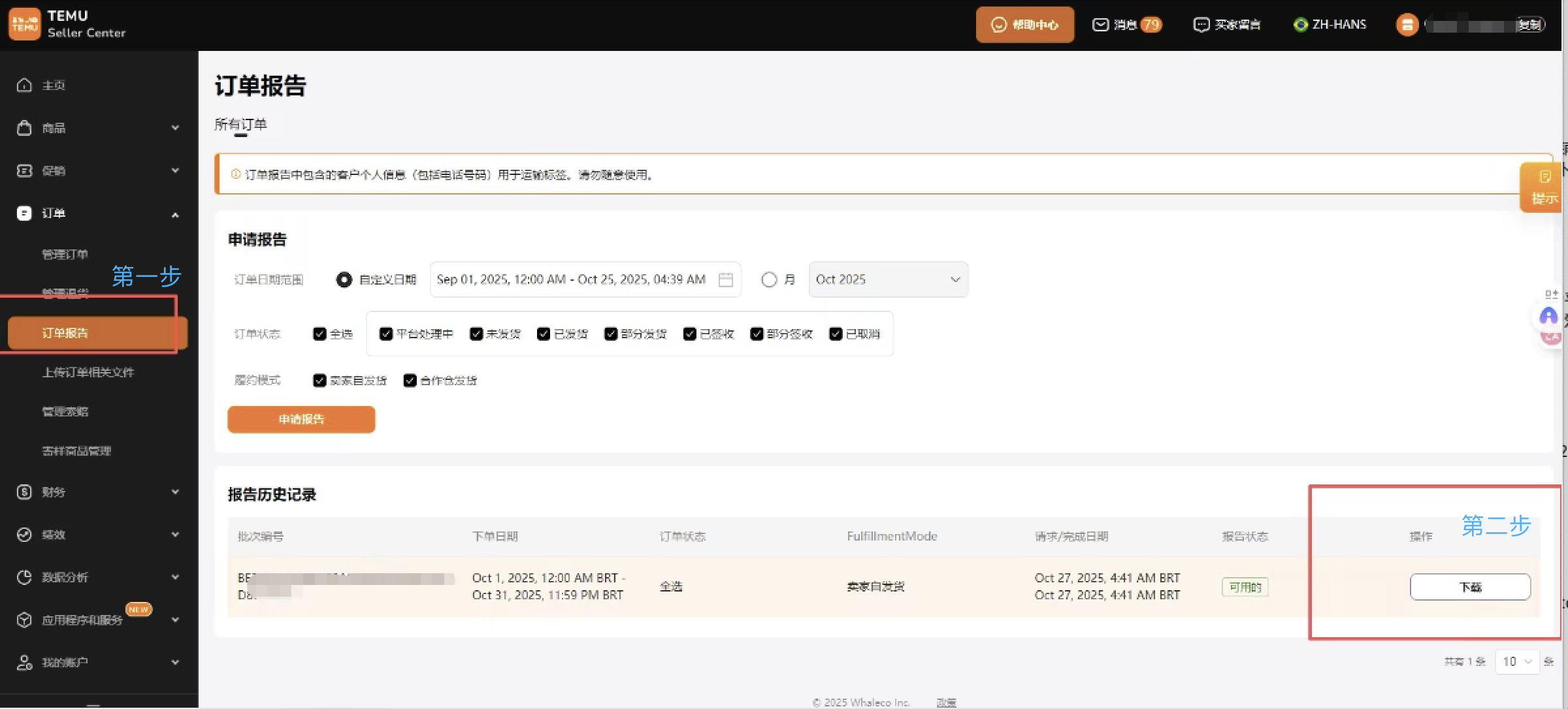 如何下载TEMU巴西本土店订单原文件?