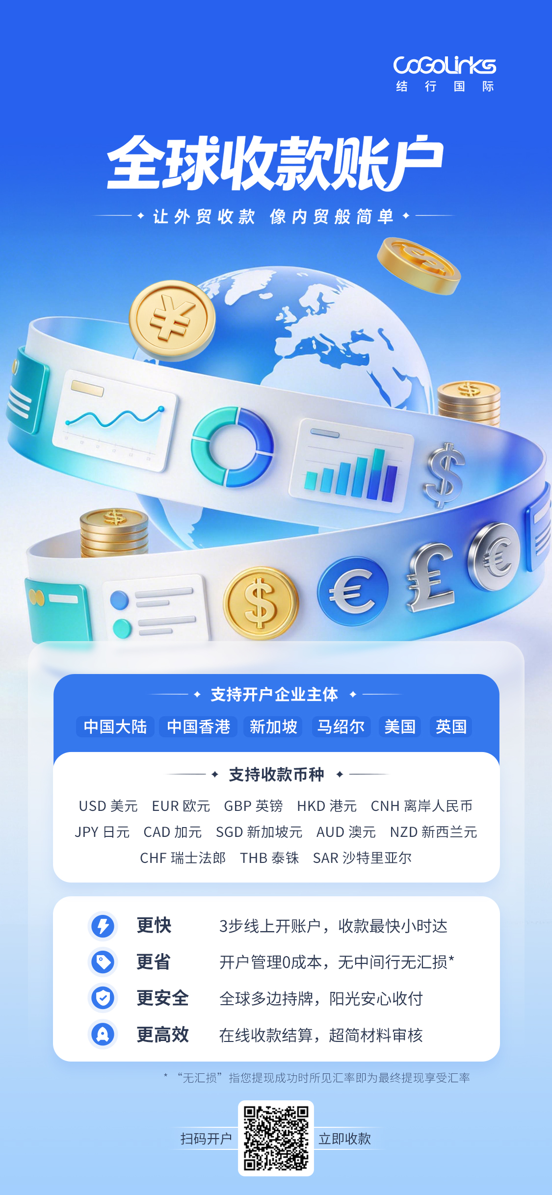 CoGoLinks结行国际全球收款账户,再升级!